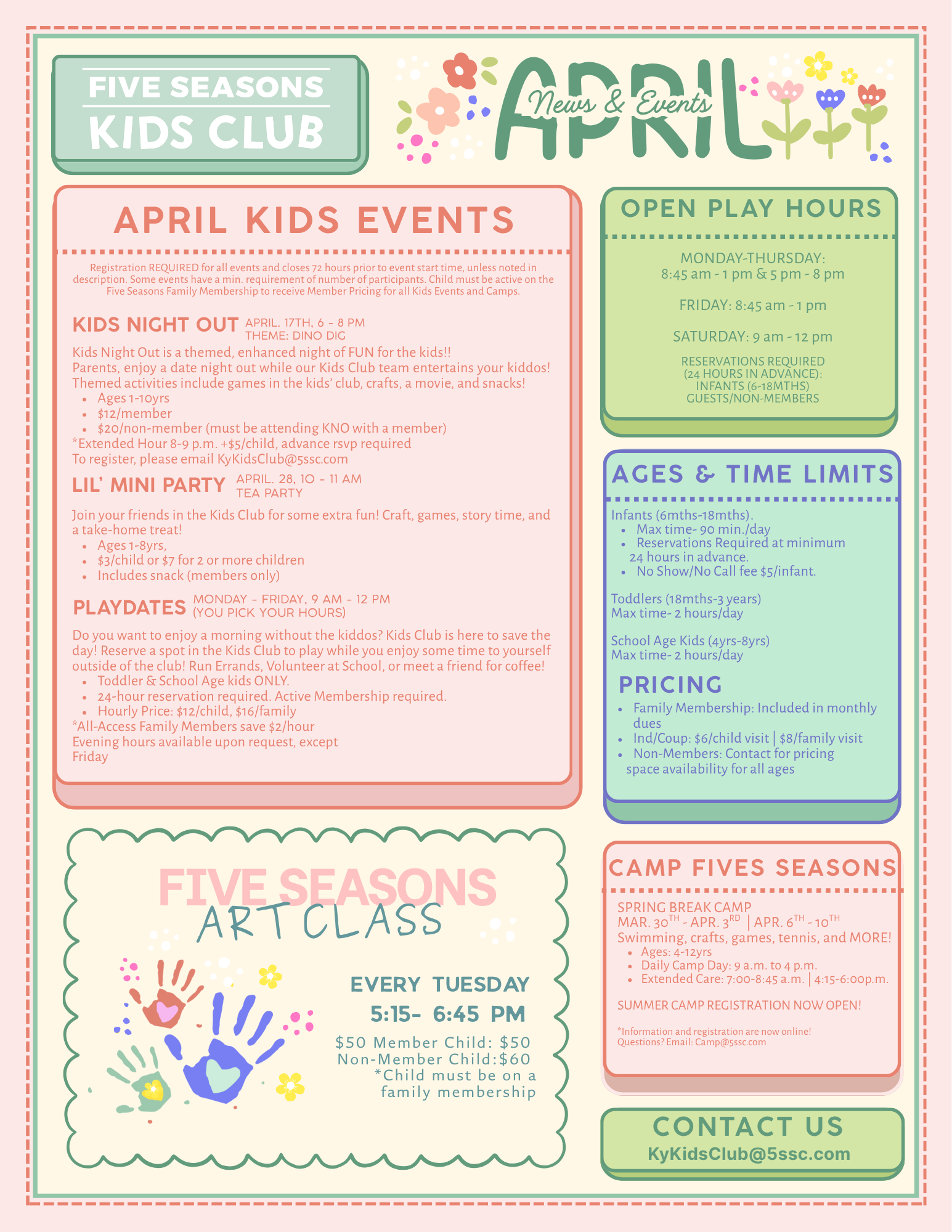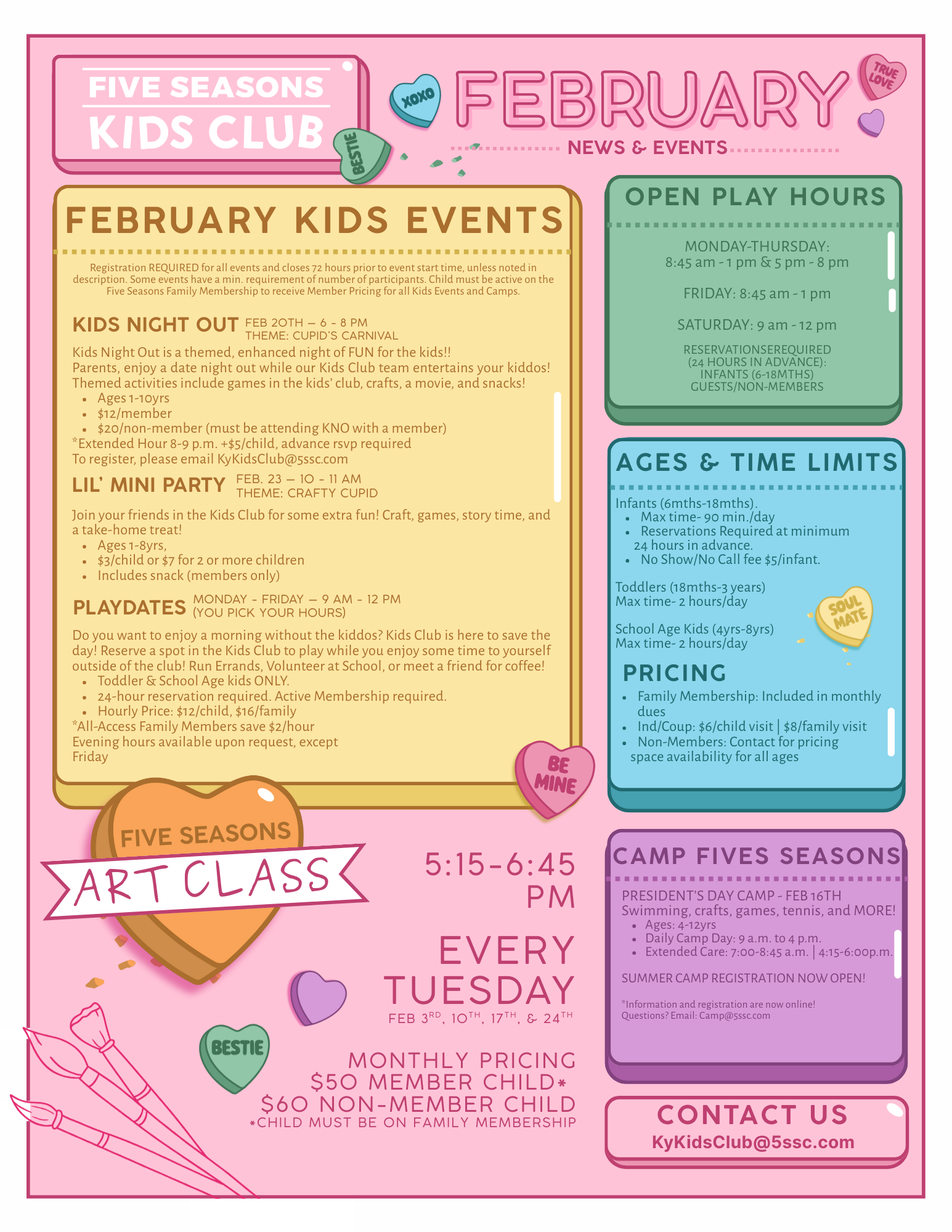 Kids Club is a clean, safe, fun and supervised childcare environment for kids 6 months – 8 years and enables parents the opportunity to work out or play tennis onsite.